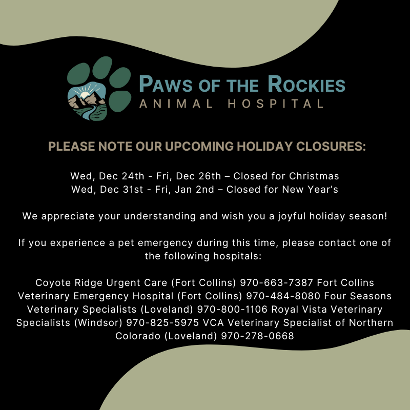 Thank you to Dr Mark and his staff. We just moved to Ft Collins and need a good vet to help us take great care of our two one year old pups. We’re happy to have found Paws of the Rockies!